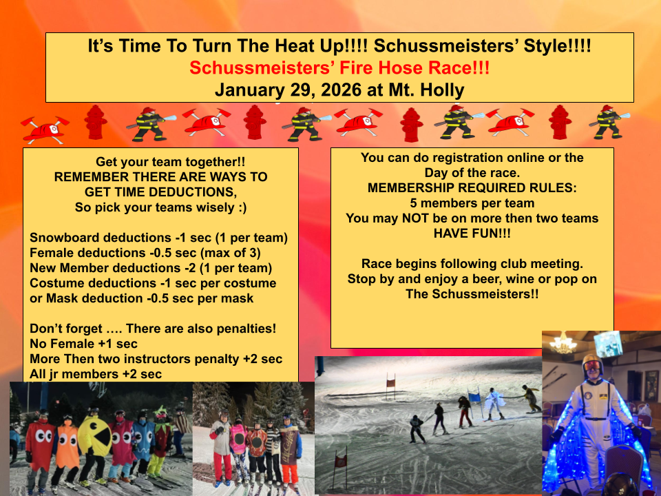 It’s time to get your teams together and figure out your costumes. You won’t want to miss out on one of the Schussmeisters' yearly traditions. If you don't have a ...