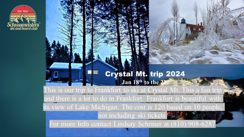 This is our trip to Frankfort to ski at Crystal Mt. This a fun trip and there is a lot to do in Frankfort. Frankfort is beautiful with its view of Lake Michigan.