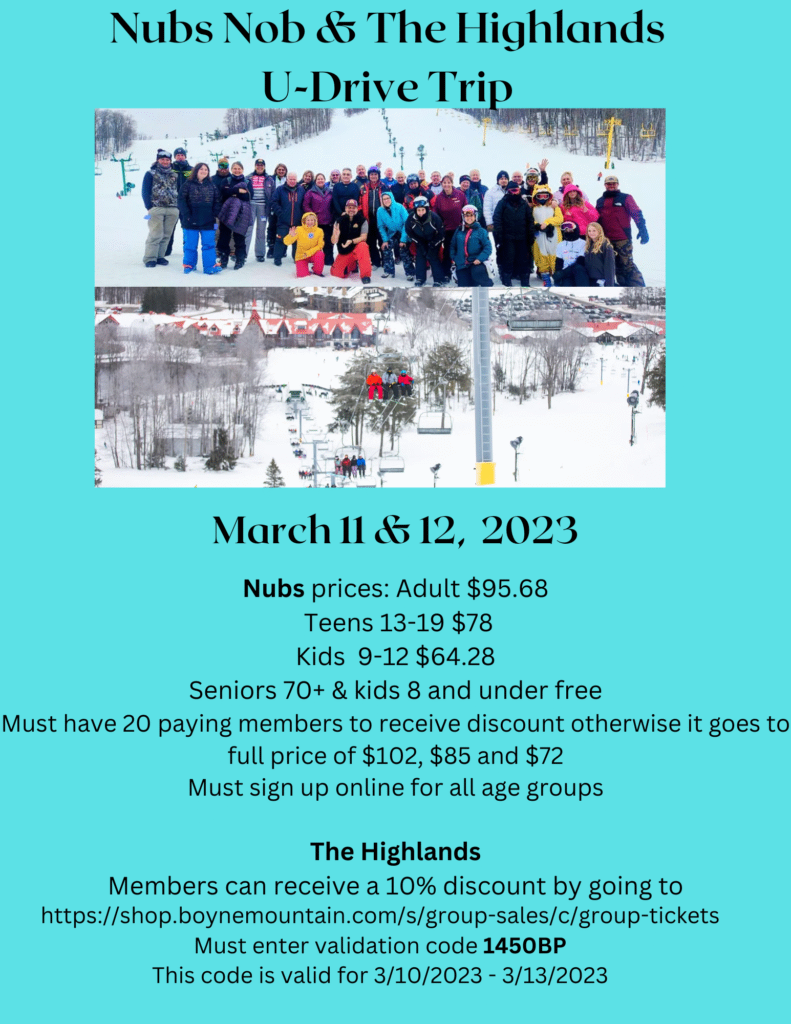 Note: Must have 20 paying members to receive discount otherwise it goes to full price of $102, $85 and $72. Must sign up online before payment can be made for the nubs trip. All prices include Credit Card fees.