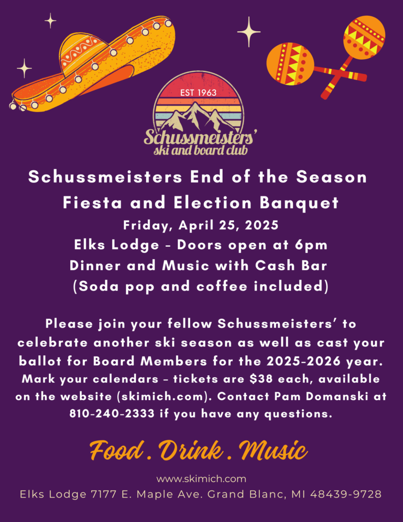 Please join your fellow Schussmeisters’ to celebrate another ski season as well as cast your ballot for Board Members for the 2025-2026 year.